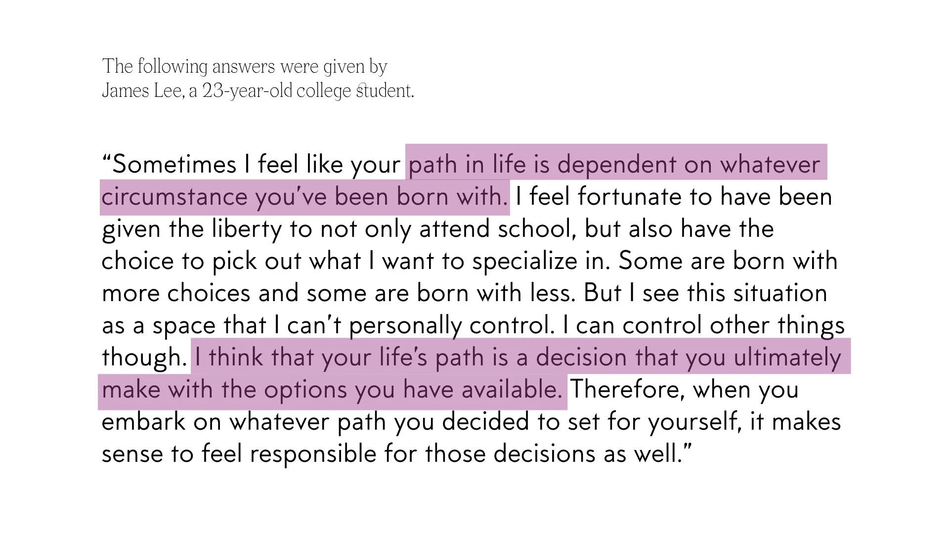Why I chose this topic: One night I had a three-hour discussion with my friend about the human existence and if we had full control over our own lives. I had a very different perspective from my friend due to my religious background. I still had many questions and was not completely sure what I believed and why. Through this book, I wanted to help others explore their views, while understanding my own.