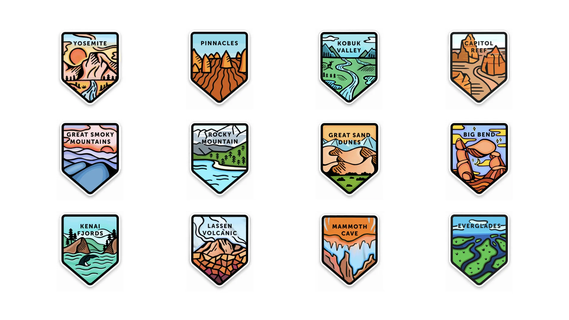Badges have not only been used as souvenirs, but as distinctive emblems worn as a mark of achievement, membership, and mark of office. My group saw potential in motivating users to actively explore more parks by having them collect and earn badges. We illustrated all 60 badges to make the traveling experience more personal and unique.